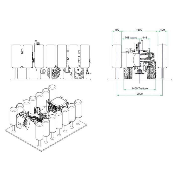 A FA.MA levéltépő 3 pontos emelőre csatlakoztatható, vagy felfogató nyereggel rögzíthető a traktorra. Két irányú váza 180°-ban elfordítható, így jobb vagy bal oldalon dolgozik. A traktor hidraulikájáról működtetett hidraulikus funkciók: Oldalra tolás (35 cm); magasság állítás (50 cm); átfordítás (180°); döntés (25°).