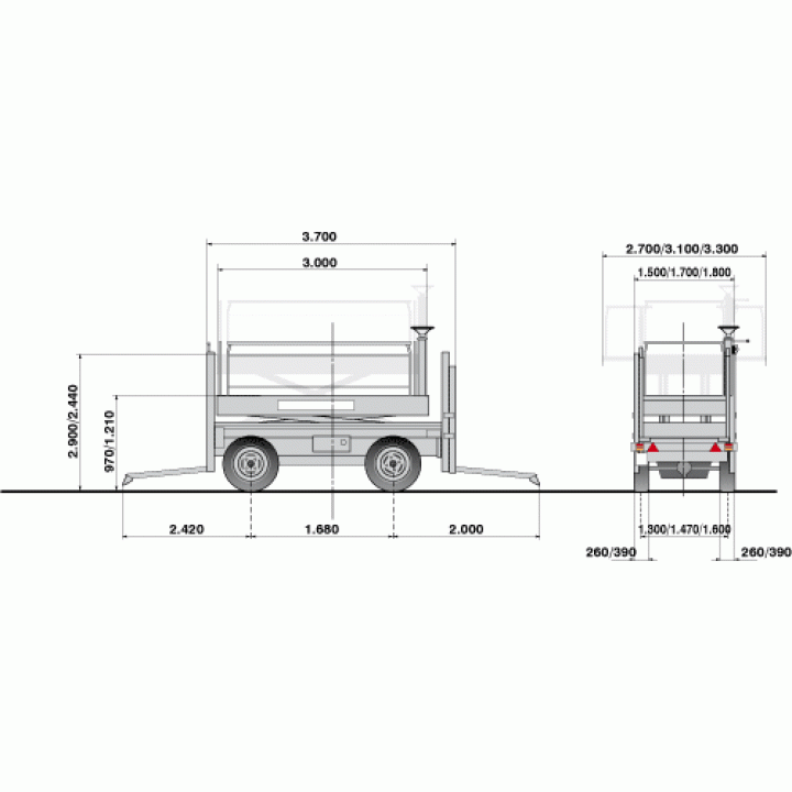 Emelőplatform méretei: Szélesség: Csukva: 1.800 mm Nyitva: 3.300 mm