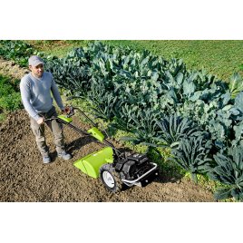 A kapálógépet egy kézzel is könnyedén lehet irányítani, köszönhetően az ellenkező irányba forgó kapáknak, amelyek stabilan tartják a gépet.