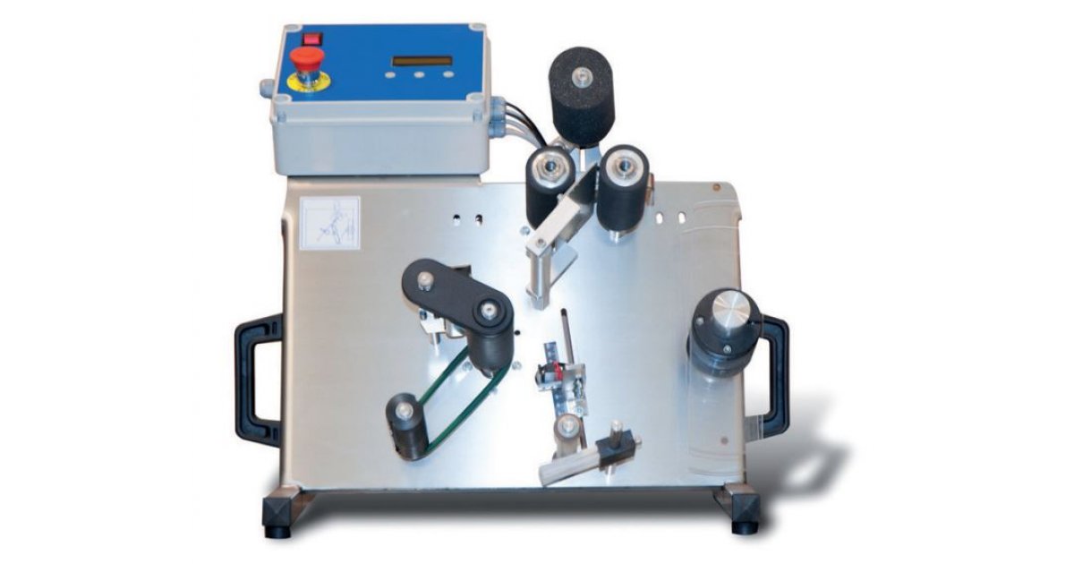 Asztali, félautomata címkéző front és hátsó címkét rakaszt egy ciklusban.